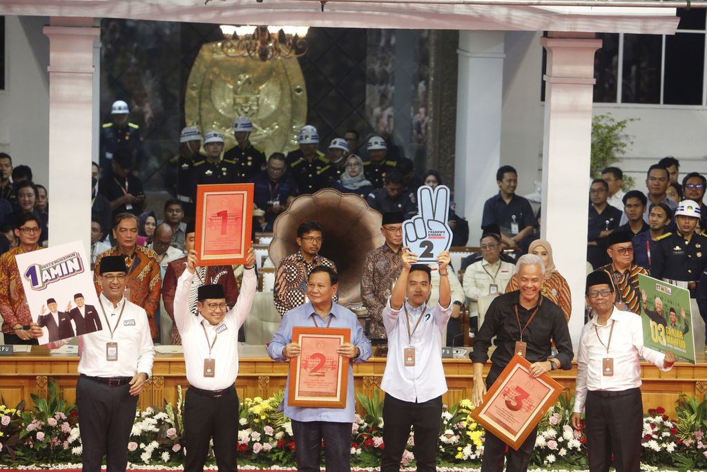 Kemudian, pasangan Ganjar Pranowo dan Mahfud Md (Ganjar-Mahfud) mendapatkan nomor urut 03. Sedangkan Prabowo Subianto dan Gibran Rakabuming Raka (Prabowo-Gibran) mendapatkan nomor urut 02.
