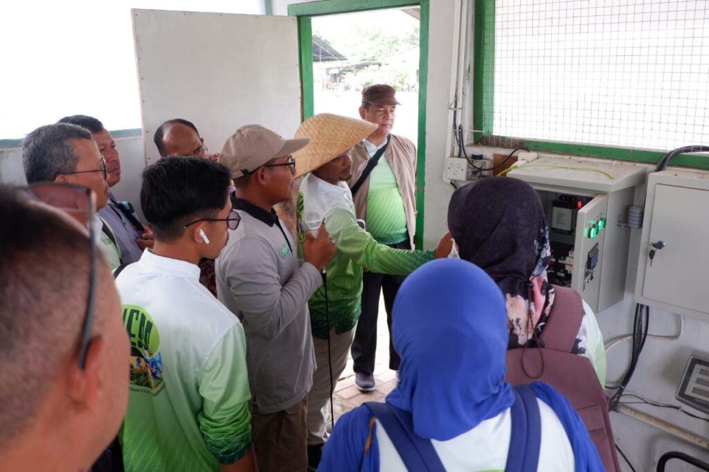 Para peserta studi banding turut diperlihatkan panel smart irrigation dan mencoba menjalankan aplikasinya langsung bersama dengan petugas TEFA yang mendampingi.