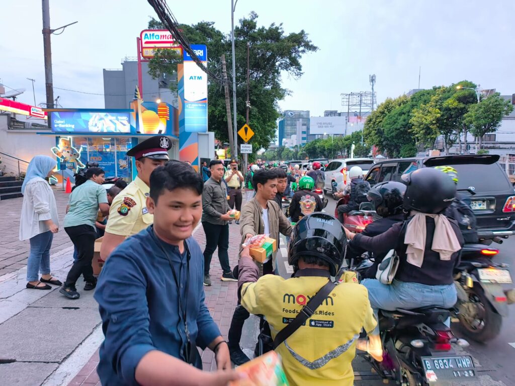 “Kami merasakan ketika waktu berbuka puasa sedang berada dijalan, mungkin belum memiliki makanan dan minuman berbuka puasa, semoga dengan adanya takjil ini bisa sedikit membantu,” ungkapnya.