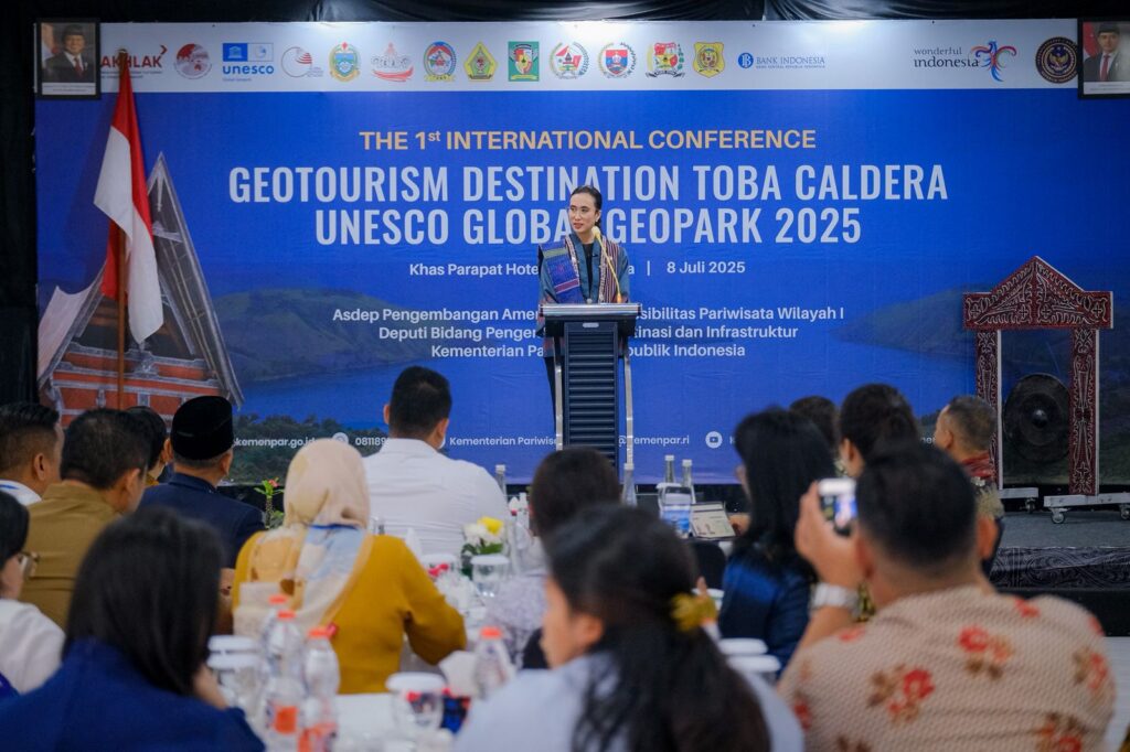 “Geopark Kaldera Toba merupakan wujud nyata visi pariwisata Indonesia. Sebuah destinasi yang menghadirkan keharmonisan antara alam, budaya, dan ilmu pengetahuan,” ujar Menteri Pariwisata Widiyanti saat membuka “The 1st International Conference: Geotourism Destination Toba Caldera UNESCO Global Geopark 2025” di Hotel Khas Parapat, Simalungun, Sumatra Utara, Selasa (8/7/2025).