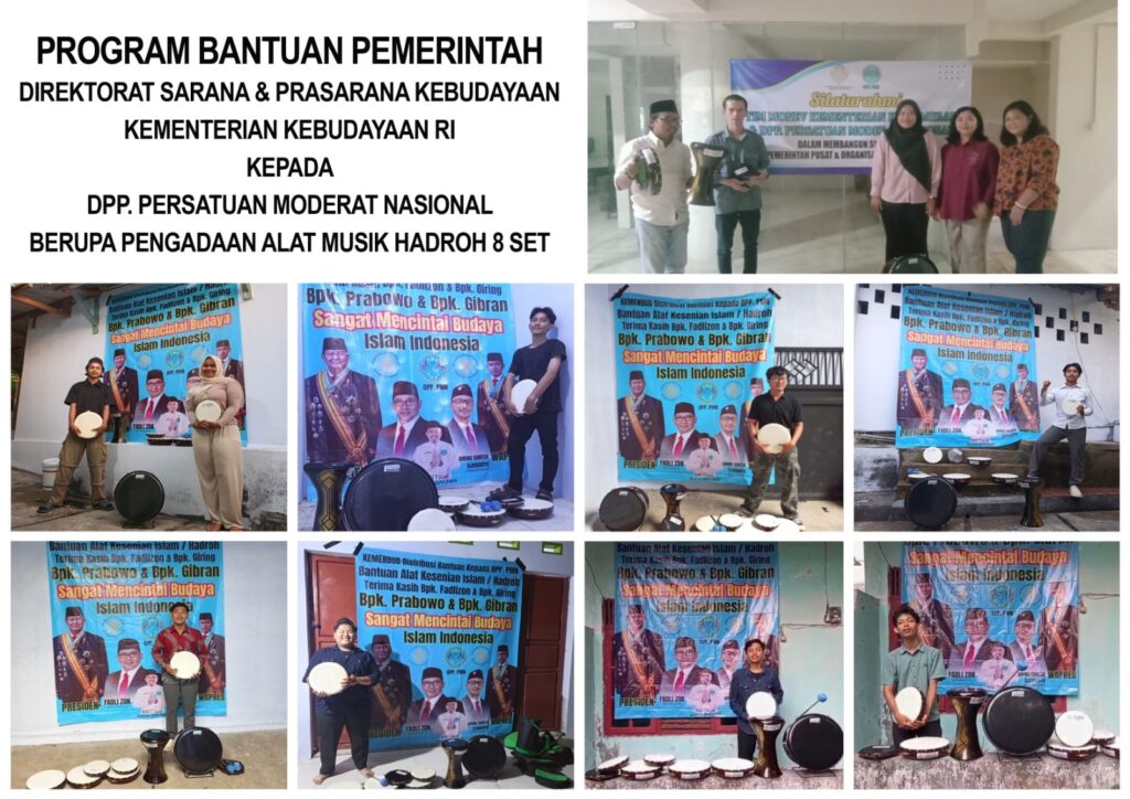 TERASPOST.COM//JAKARTA – Dewan Pengurus Pusat Persatuan Moderat Nasional (DPP PMN) menerima bantuan dari Kementerian Kebudayaan Republik Indonesia berupa delapan unit alat kesenian Islam Hadroh. Bantuan tersebut diberikan usai dilakukan monitoring dan evaluasi pada tanggal 26 November 2025, dengan hasil yang dinilai sangat memuaskan oleh pihak Kementerian Kebudayaan.